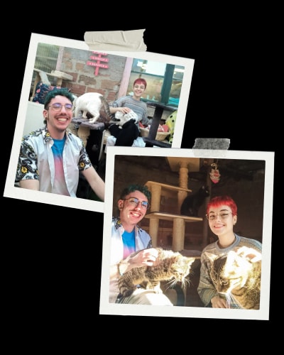 En janvier 2023, nous avons décidé de nous lancer ensemble dans cette aventure extraordinaire, celle d’ouvrir le Chat-Rivari Café : le premier café à chats parisien qui proposera une carte 100% végétale, et aussi le premier dont les pensionnaires seront à l’adoption !